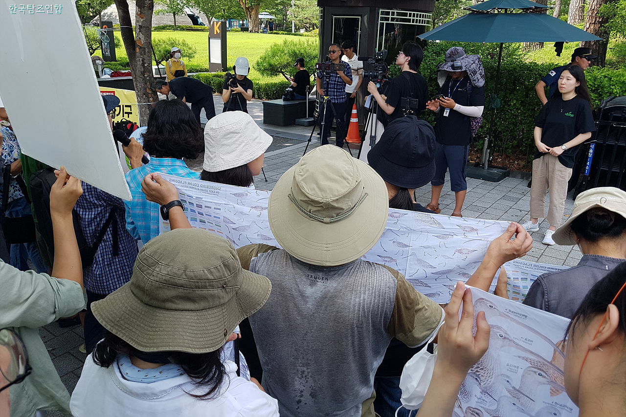 새만금 신공항 건설 반대 전국 탐조인 궐기 성명 발표 기자회견 현장